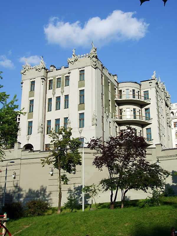 2008 р. Загальний вигляд з боку пл.І.Франка Розмір зображення: 600:800 піксел 2008 р. 9 червня. Фото М.І.Жарких. Вкладені елементи Фрагмент вінчання зі скульптурами Наріжна скульптура Фрагмент вінчання зі скульптурами