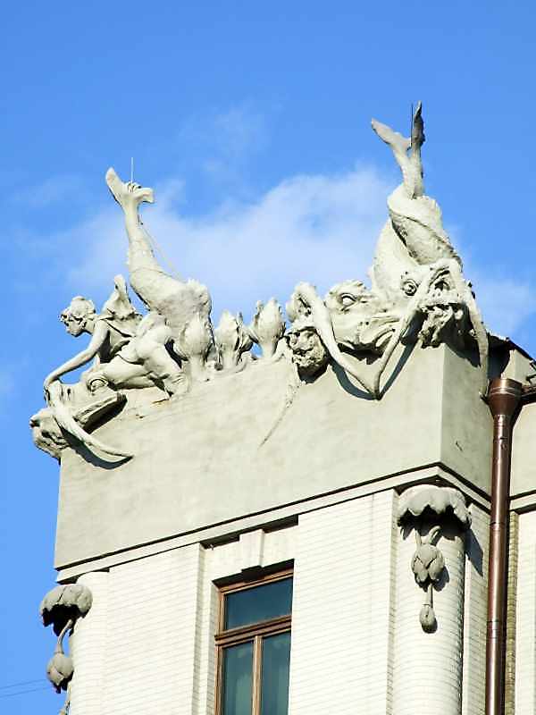 Фрагмент вінчання зі скульптурами Розмір зображення: 600:800 піксел 2008 р. 9 червня. Фото М.І.Жарких. Вище | Наступна сторінка
