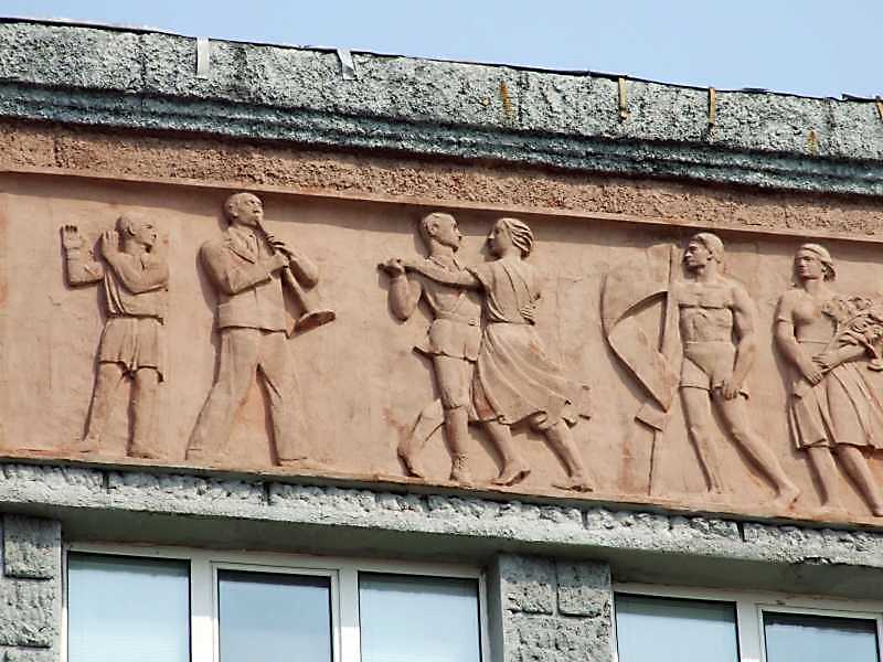 Хлопчик б’є в долоні; чоловік грає на трубі; пара танцює; чоловік з прапором; жінка з квітамиРозмір зображення: 800:600 піксел 17 квітня 2009 р. Фото М.І.Жарких. |