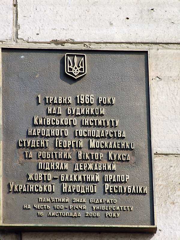Меморіальна дошка підняттю національного прапора в 1966 р.Розмір зображення: 600:800 піксел 17 квітня 2009 р. Фото М.І.Жарких. |