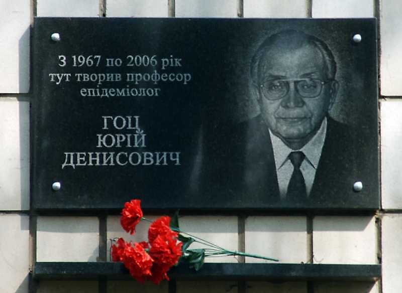 Меморіальна дошка Ю.Д.Гоцу Розмір зображення: 800:584 піксел 17 квітня 2009 р. Фото М.І.Жарких. Попередня сторінка | Вище | Наступна сторінка