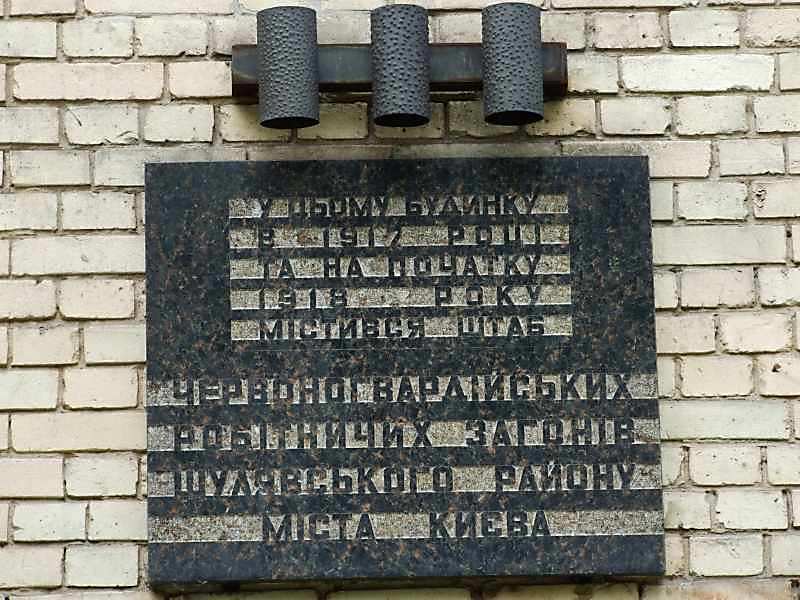 Меморіальна дошка штабу червоногвардійських робітничих загонів Шулявського району м.КиєваРозмір зображення: 800:600 піксел 27 червня 2007 р. Фото М.І.Жарких. |