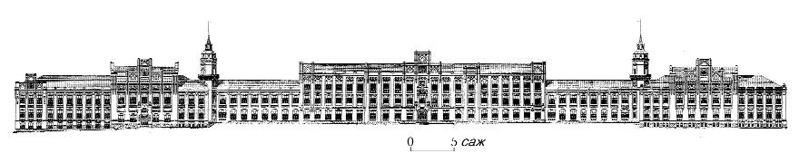 Проект фасаду головного навчального корпусуРозмір зображення: 880:180 піксел Джерело: Звід пам’яток історії і культури України. – К.: 2003 р., т. 2 (Київ), № 443-01a. |