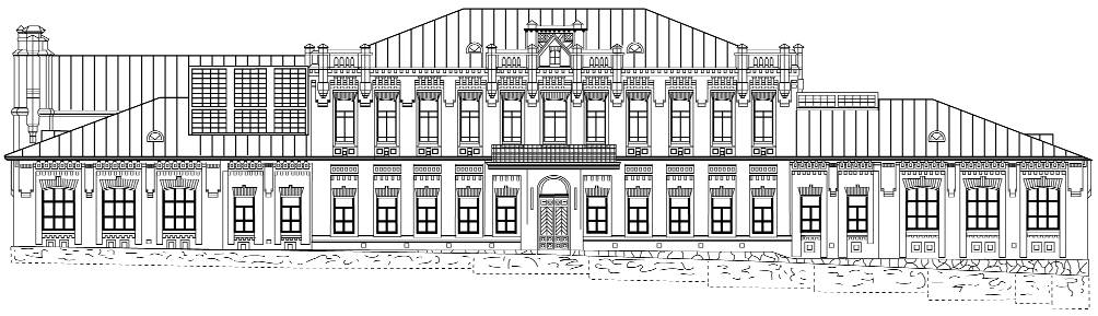 Поч. 20 ст. Проект фасаду механічних майстереньРозмір зображення: 1004:289 піксел Джерело: Звід пам’яток історії і культури України. – К.: 2003 р., т. 2 (Київ), № 443-08a. |
