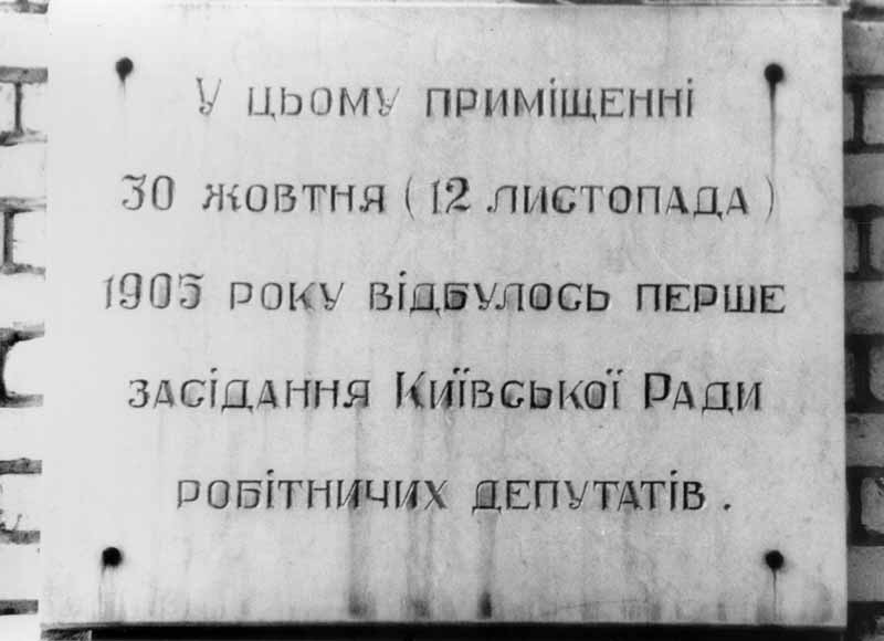 Фото меморіальної дошки на честь першого засідання Київської Ради робітничих депутатівРозмір зображення: 800:580 піксел |