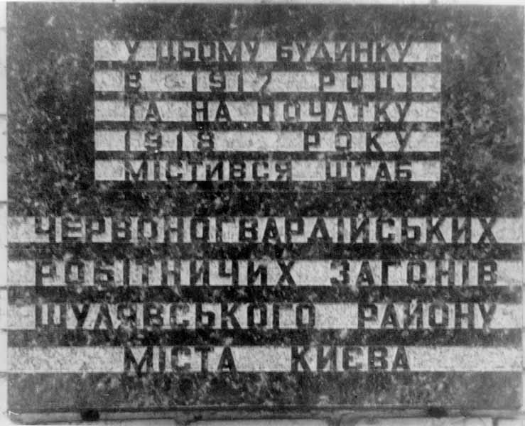 Фото меморіальної дошки з приводу розташування штабу Червоногвардійських робітничих загонівРозмір зображення: 739:600 піксел |