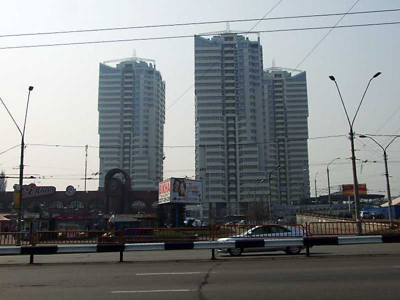 Житловий комплекс (№ 47а-б-в ? В.Гетьмана, 1?)Розмір зображення: 800:600 піксел Загальний вигляд з боку просп. Перемоги. 17 квітня 2009 р. Фото М.І.Жарких. |