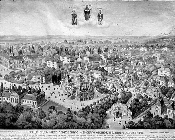 1912 р. Літографія із загальний видом монастиряРозмір зображення: 696:556 піксел Джерело: Звід пам’яток історії і культури України. – К.: 2003 р., т. 2 (Київ), № 442a. |
