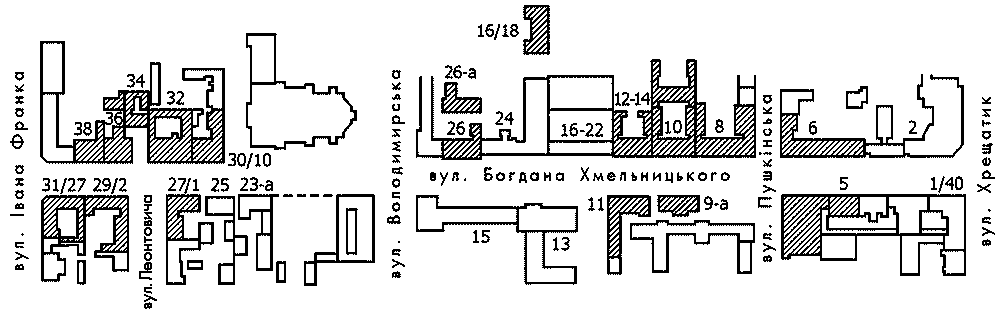 План початку вулиціРозмір зображення: 1006:318 піксел Джерело: Звід пам’яток історії і культури України. – К.: 2011 р., т. 3 (Київ), № 541-2. |