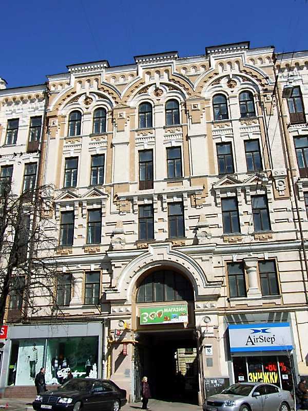 Центральна частина головного фасаду Розмір зображення: 600:800 піксел 3 квітня 2009 р. Фото М.І.Жарких. Вкладені елементи Фрагмент 5-го поверху Портал з проїздом