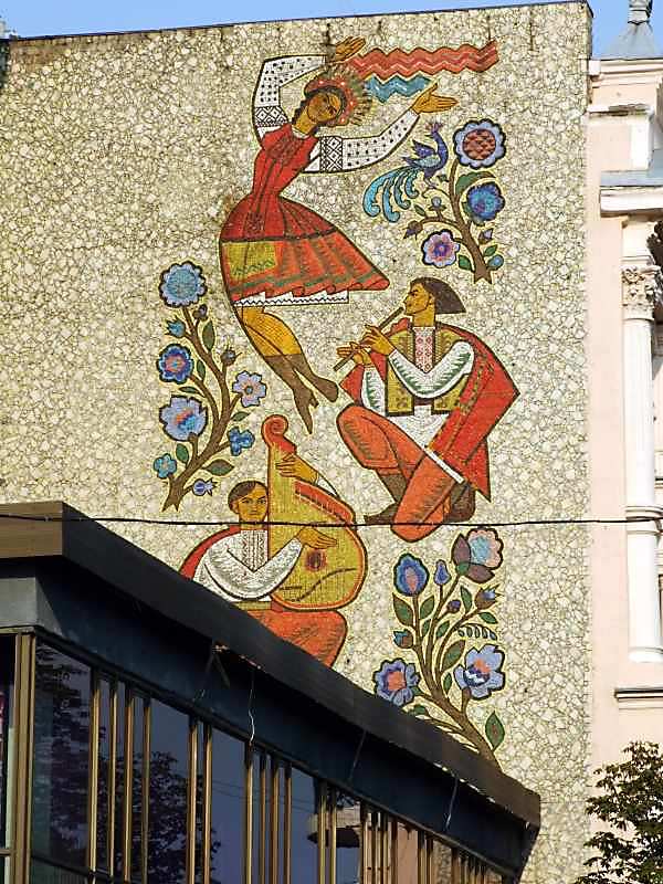 2007 р. Мозаїка “Музика і танець” на торцевій стіні, зверненій до Національної опериРозмір зображення: 600:800 піксел 19 липня 2007 р. Фото М.І.Жарких. |