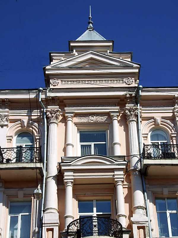 Центральний ризаліт, 4-5-й поверхи Розмір зображення: 600:800 піксел 3 квітня 2009 р. Фото М.І.Жарких. Вище | Наступна сторінка