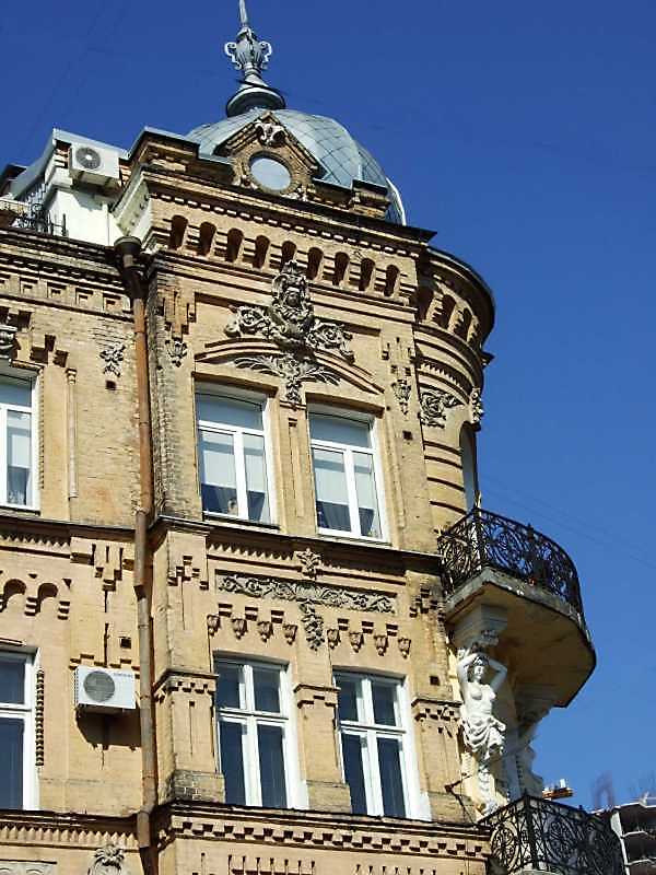 Наріжна частина Розмір зображення: 600:800 піксел 8 квітня 2009 р. Фото М.І.Жарких. Вкладені елементи Вікна 4-го поверху (+) Каріатіда Вікна 3-го поверху