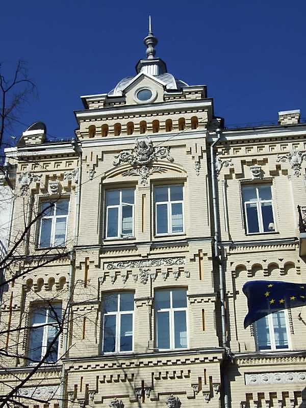 Фрагмент 3-4-го поверхів Розмір зображення: 600:800 піксел 8 квітня 2009 р. Фото М.І.Жарких. Вкладені елементи Вікна 4-го поверху (+) Вікно 3-го поверху