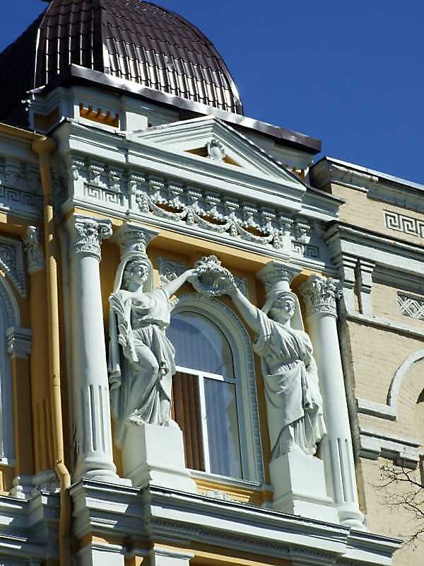 2009 р. Фрагмент 4-го поверху (правий) Розмір зображення: 600:800 піксел 8 квітня 2009 р. Фото М.І.Жарких. Вкладені елементи Каріатіди (+)