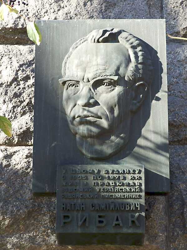 В 1935 – 1978 рр. в цьому будинку жив і працював письменник Н.С.Рибак, меморіальна дошка 1984 р. [Памятники истории и культуры Украинской ССР. – К.: 1987 г., с. 30].