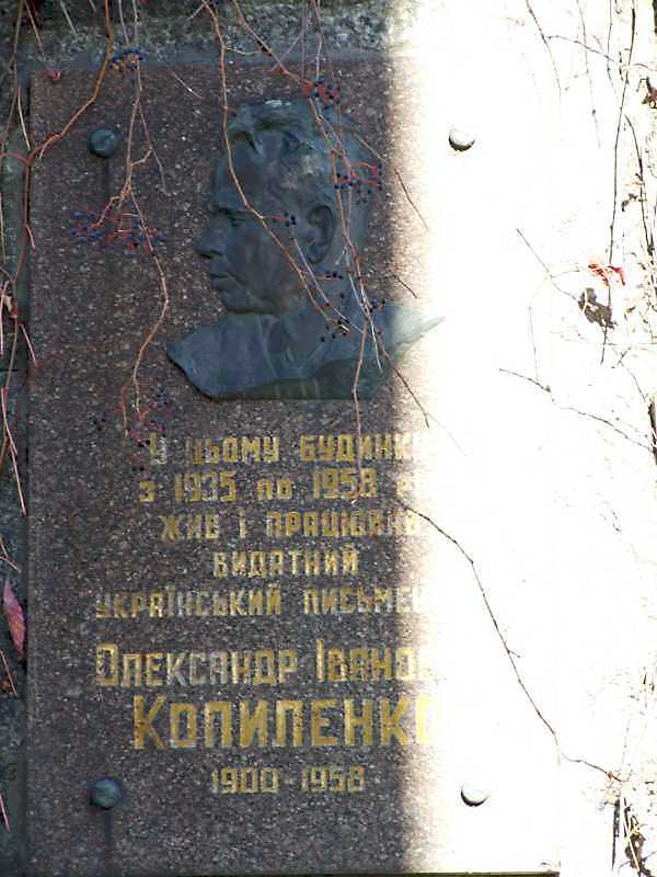 В 1935 – 1958 рр. в цьому будинку жив і працював письменник О.І.Копиленко, меморіальна дошка 1959 р. [Памятники истории и культуры Украинской ССР. – К.: 1987 г., с. 30].