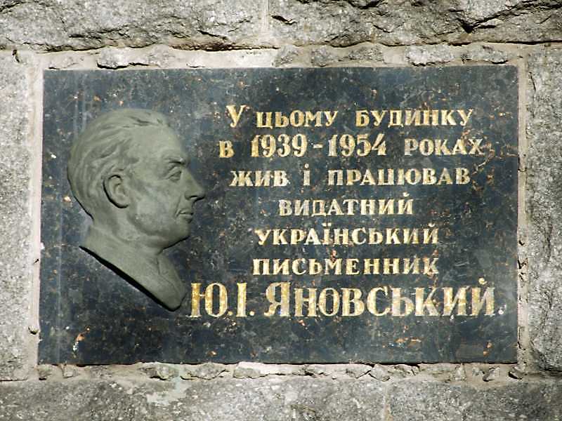 В 1939 – 1954 рр. в цьому будинку жив і працював письменник Ю.І.Яновський, меморіальна дошка 1958 р. [Памятники истории и культуры Украинской ССР. – К.: 1987 г., с. 30].