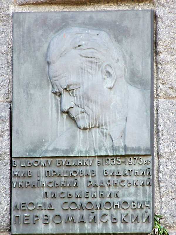 В 1935 – 1973 рр. в цьому будинку жив і працював письменник Л.С.Первомайський, меморіальна дошка 1974 р. [Памятники истории и культуры Украинской ССР. – К.: 1987 г., с. 30].