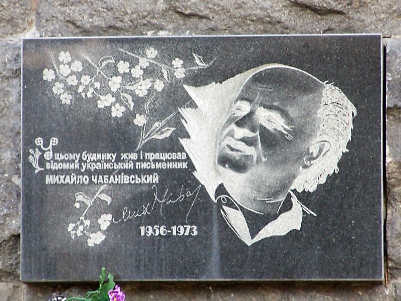 Меморіальна дошка М.Чабанівському Розмір зображення: 800:600 піксел 10 листопада 2008 р. Фото М.І.Жарких. Вкладені елементи 2009 р.