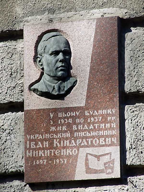 В 1934 – 1937 рр. в цьому будинку жив і працював письменник І.К.Микитенко, меморіальна дошка 1962 р. [Памятники истории и культуры Украинской ССР. – К.: 1987 г., с. 30].