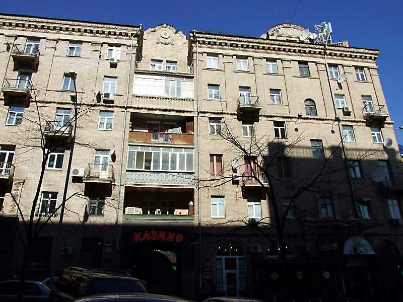 2009 р. Фасад по вул.Б.Грінченка Розмір зображення: 800:600 піксел 3 квітня 2009 р. Фото М.І.Жарких. Вкладені елементи Фронтон Лиштви-пілястри
