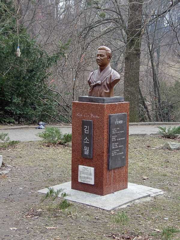 Пам’ятник Кім Со ВолюРозмір зображення: 600:800 піксел Фото М. І. Жарких, 29 березня 2021 р. Довідка у Вікіпедії (корейський поет Кім Со Воль): |