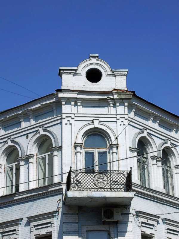 Балкон 3-го поверху і фронтон Розмір зображення: 600:800 піксел Фото М. І. Жарких, 21 березня 2021 р. Вище | Наступна сторінка