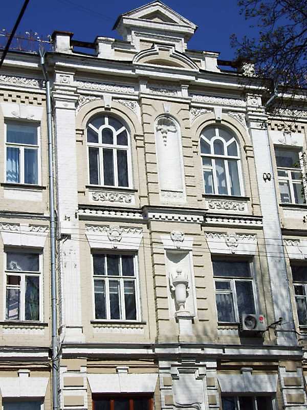Фрагмент 3-4-го поверхів Розмір зображення: 600:800 піксел 9 квітня 2009 р. Фото М.І.Жарких. Вкладені елементи Ніша 4-го поверху Вікно 4-го поверху Ваза Вікно 3-го поверху
