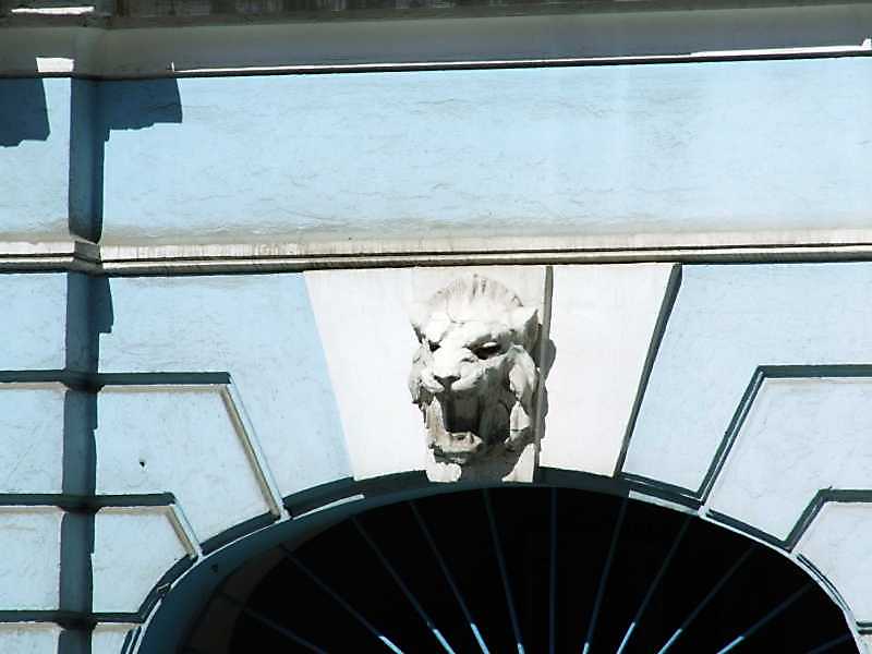 Замковий камінь проїзду з маскою лева Розмір зображення: 800:600 піксел 9 квітня 2009 р. Фото М.І.Жарких. Попередня сторінка | Вище | Наступна сторінка