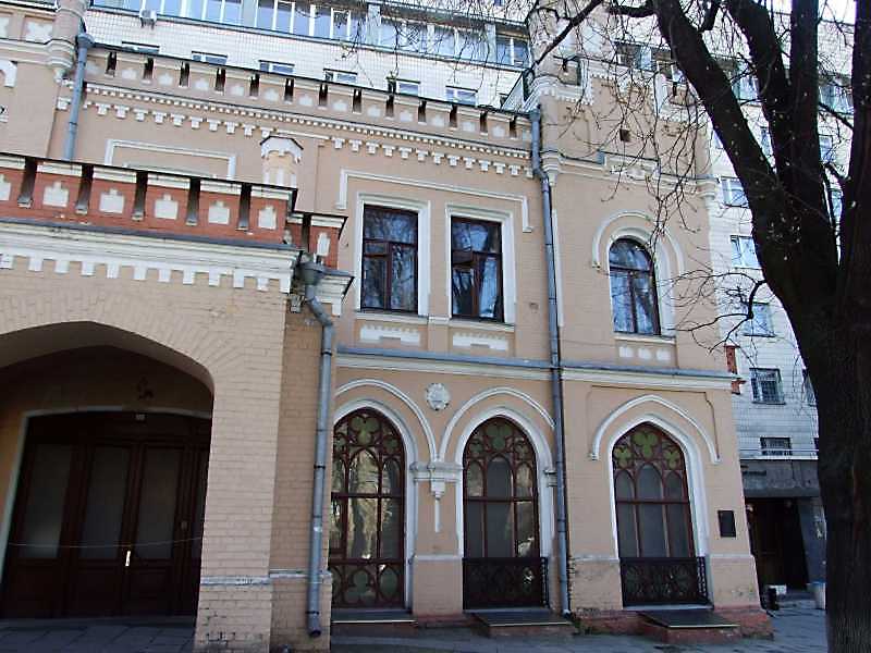 2009 р. Головний фасад (права частина) Розмір зображення: 800:600 піксел 9 квітня 2009 р. Фото М.І.Жарких. Вкладені елементи [2] Маска лева