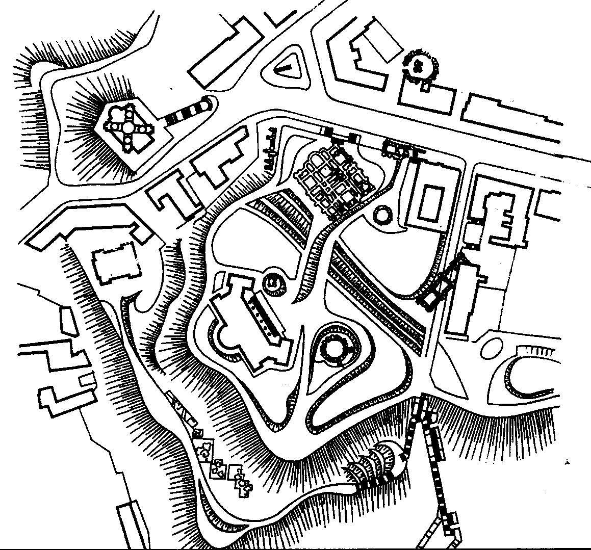 План Київського дитинця (за проектом парку-музею „Стародавній Київ”, автори – група архітектів під керівництвом А. Милецького), 1987 р.