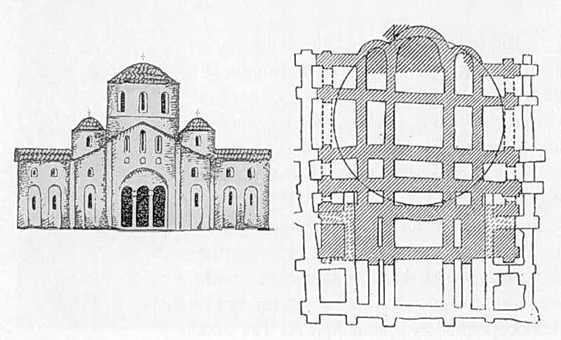Рекомпозиція Десятинної церкви: головний фасад, план (за проектом Г. Корзухіної, 1957 р.)