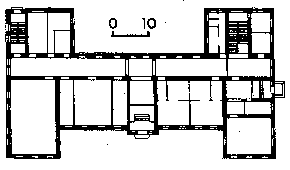 Головний корпус. План 1 поверхуРозмір зображення: 598:351 піксел Джерело: Звід пам’яток історії і культури України. – К.: 1999 р., т. 1 (Київ), с. 516. |