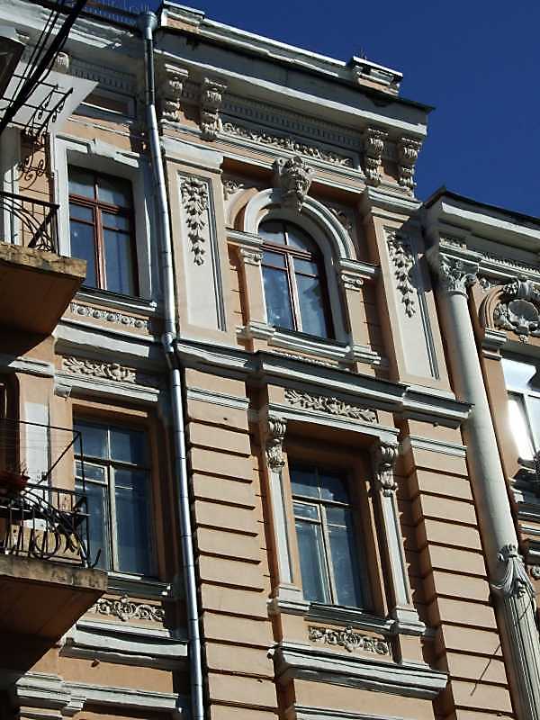 Фрагмент 4-5-го поверхів Розмір зображення: 600:800 піксел 21 квітня 2009 р. Фото М.І.Жарких. Вкладені елементи Вікно 5-го поверху (+) Вікно 4-го поверху