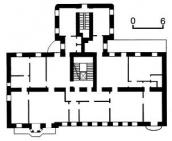 Флігель. П’ятиповерховий з невеликою мансардою по осі фасаду і підвалом, цегляний, пофарбований, у плані прямокутний. Перекриття пласкі, дах двосхилий, з бляшаним покриттям.
