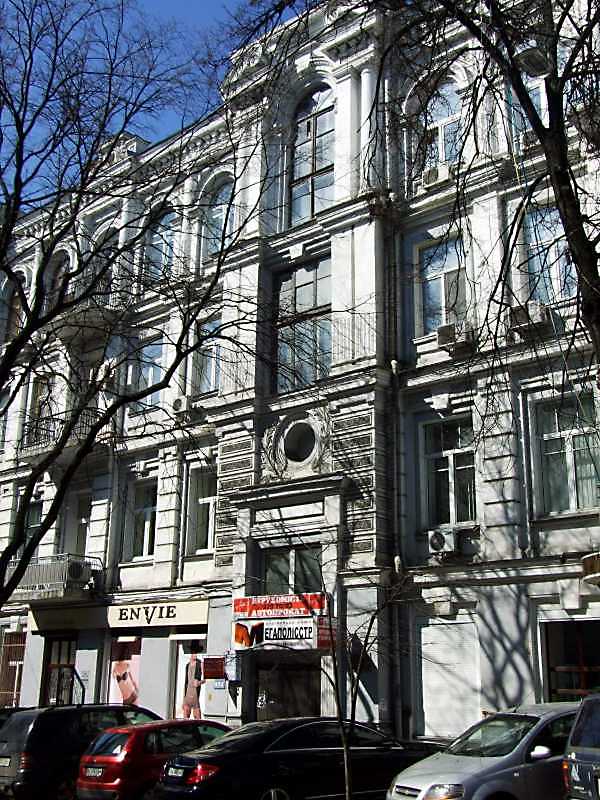 2009 р. Центральна частина головного фасаду Розмір зображення: 600:800 піксел 3 квітня 2009 р. Фото М.І.Жарких. Вкладені елементи Вікно 4-го поверху Люкарна 2-го поверху