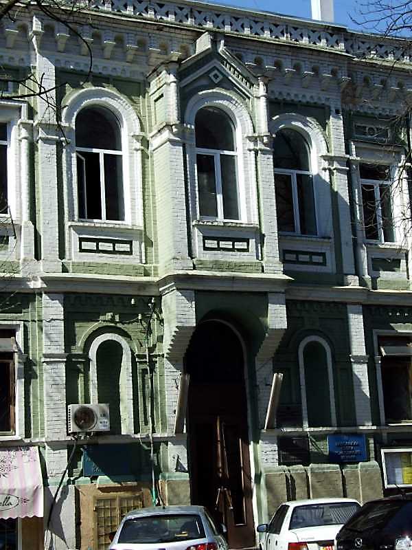 2009 р. Фрагмент головного фасаду Розмір зображення: 600:800 піксел 3 квітня 2009 р. Фото М.І.Жарких. Вкладені елементи Еркер 2-го поверху