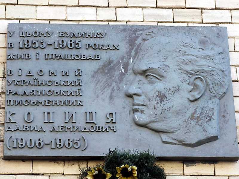 В 1953 – 1965 рр. в цьому будинку жив і працював Д.Д.Копиця – письменник; меморіальна дошка 1971 р. [Памятники истории и культуры Украинской ССР. – К.: 1987 г., с. 36].