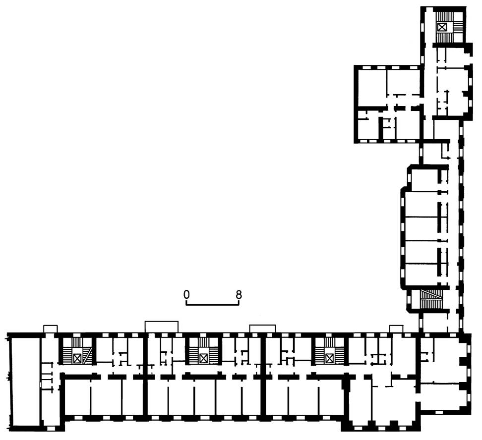 [2003 р.] План другого поверхуРозмір зображення: 972:888 піксел Джерело: Звід пам’яток історії і культури України. – К.: 2003 р., т. 2 (Київ), № 459-02a. |