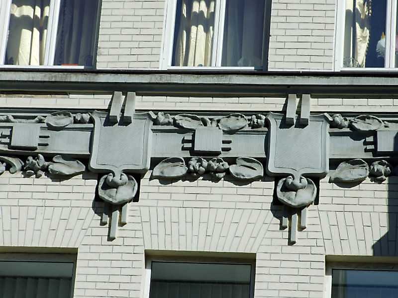 Рельєфний пояс між 3 і 4 поверхами Розмір зображення: 800:600 піксел 21 квітня 2009 р. Фото М.І.Жарких. Попередня сторінка | Вище | Наступна сторінка