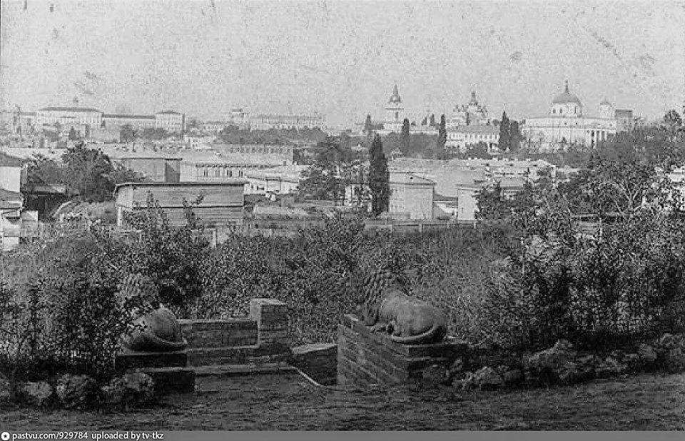 На передньому плані – сходи із левами з вул. Банкової до площі І. Франка. На обрії ліворуч – Присутні місця (Володимирська, 15), далі направо Михайлівський Золотоверхий монастир і Олександрівський костел.