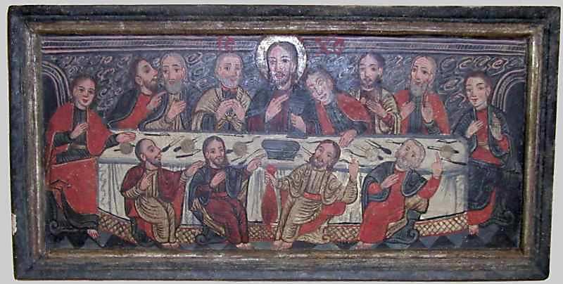 Тайна вечеря. 18 ст. Дерево, темпера Розмір зображення: 800:404 піксел 9 серпня 2005 р. Фото М.І.Жарких. Вкладені елементи Загальний вигляд Ліва частина Права частина