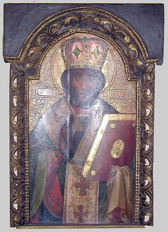 Св.Микола. Кін. 18 ст. Дерево, олія, різьблення, позолотаРозмір зображення: 580:800 піксел 9 серпня 2005 р. Фото М.І.Жарких. |