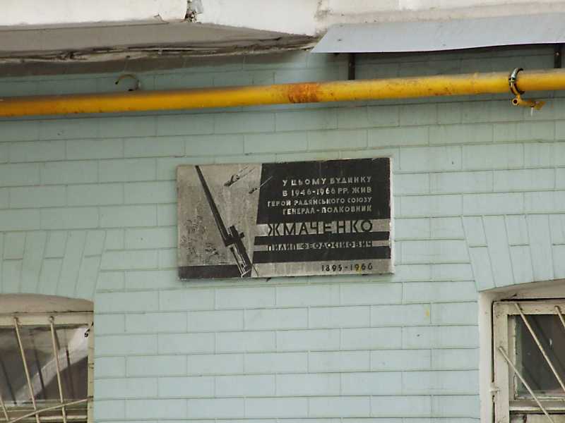 Меморіальна дошка П.Ф.Жмаченку Розмір зображення: 800:600 піксел 6 травня 2010 р. Фото М.І.Жарких. Вище | Наступна сторінка