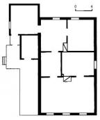 Розміщений на тильній межі ділянки, обнесеної огорожею. Перед головним фасадом розбито невеликий сад. 1957 будинок капітально перебудовано з втратою первісного декору.