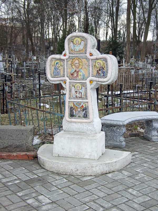 2021 р. Пам’ятний хрест біля входу Розмір зображення: 600:800 піксел Фото М. І. Жарких, 18 березня 2021 р. Попередня сторінка | Вище | Наступна сторінка