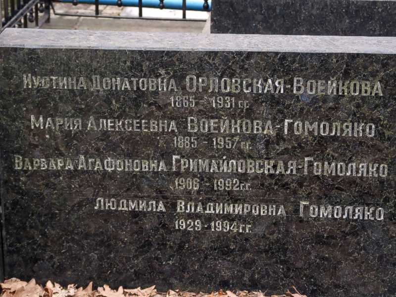 Напис: «Иустина Донатовна Орловская-Воейкова (1865 – 1931 гг.)