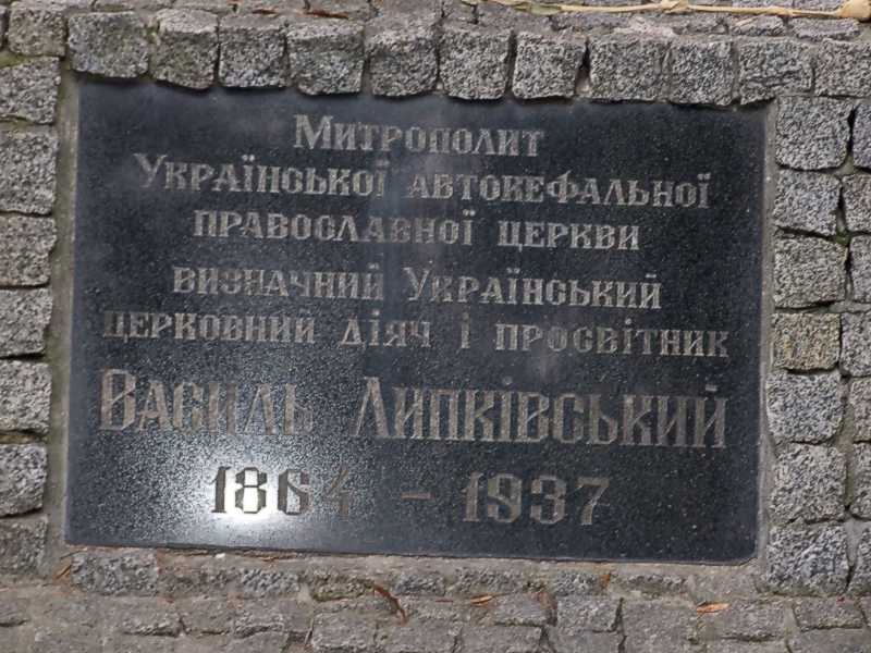 Напис на постаментіРозмір зображення: 800:600 піксел Фото М. І. Жарких, 18 березня 2021 р. Напис: «Митрополит Української автокефальної православної церкви, визначний український діяч і провісник Василь Липківський 1864 – 1937». |