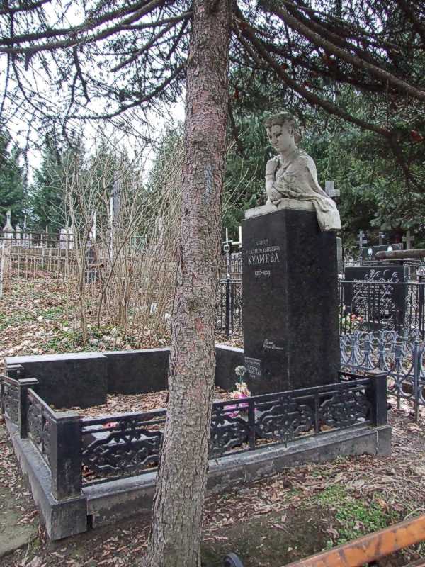 Могила Н. К. Кулієвої (1916 – 1959)Розмір зображення: 600:800 піксел Фото М. І. Жарких, 18 березня 2021 р. Напис: «Доцент Ниязгуль Каррыевна Кулиева 1916 – 1959 Прощай, дорога Джаночка». За фахом вона – лікар. |